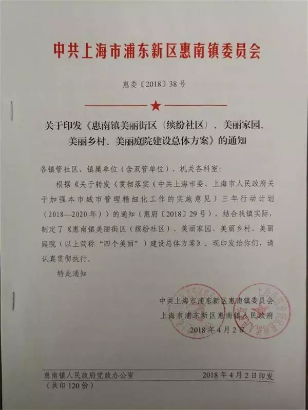 4月2日,惠南镇党委、政府正式印发了《惠南镇美丽街区、美丽家园、美丽乡村、美丽庭院建设总体方案》,将在桥北、海沈、陆楼3个村开展美丽庭院、美丽乡村试点工作,并在下半年全面完成。