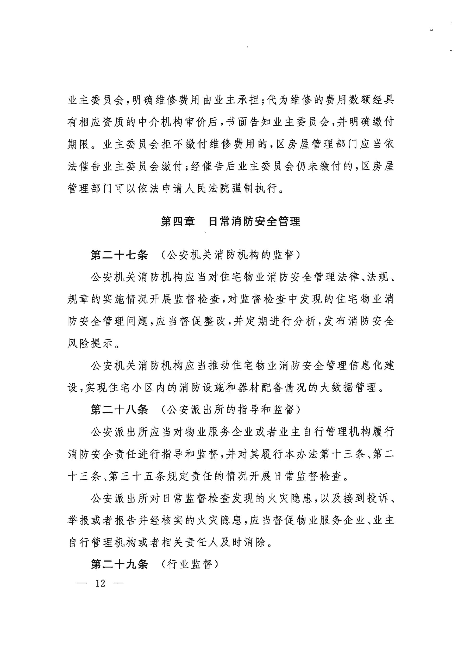 上海市住宅物业消防安全管理办法